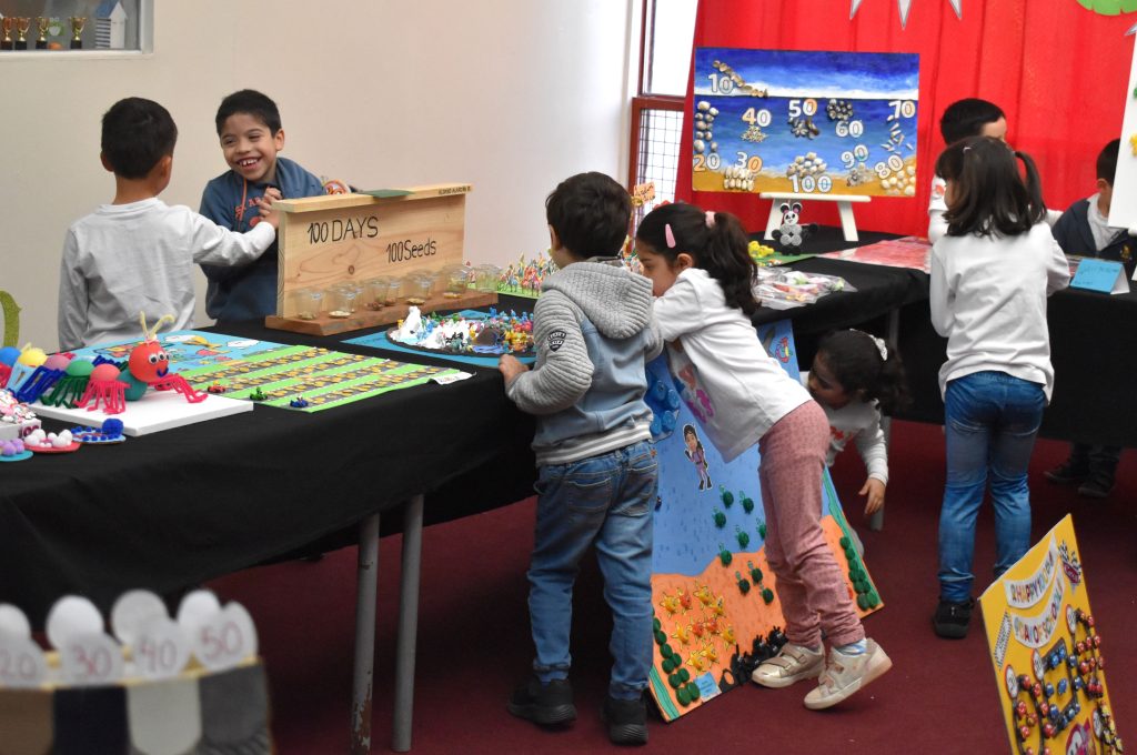Cada estudiante asistió con una polera especialmente diseñada por su familia para celebrar este hito. Además, ¡la fecha terminó con la tradicional muestra de colecciones! Autitos, pulseras, dibujos, medallas, muñecas y todo tipo de objetos adornaron el gimnasio de Early Childhood.