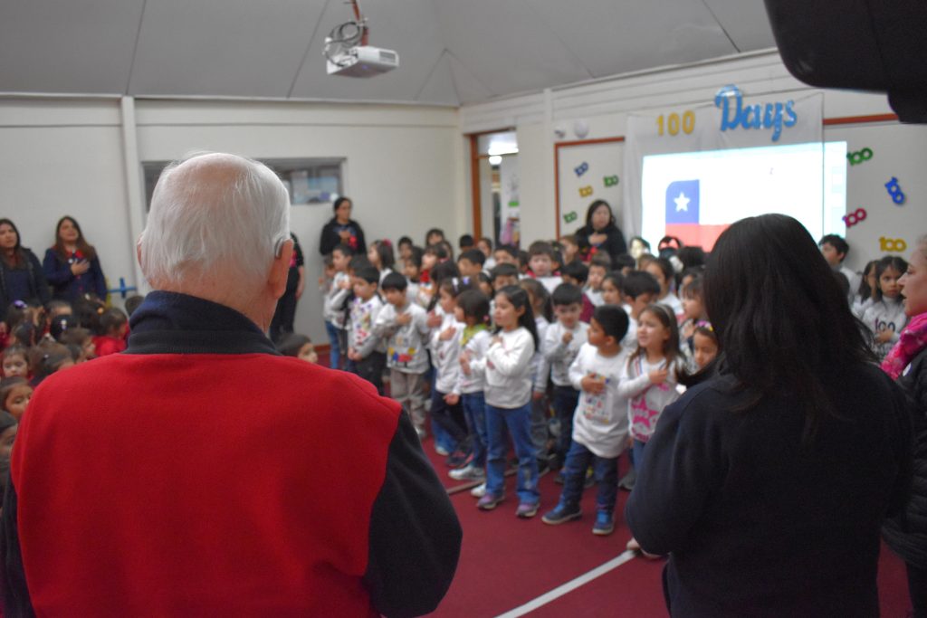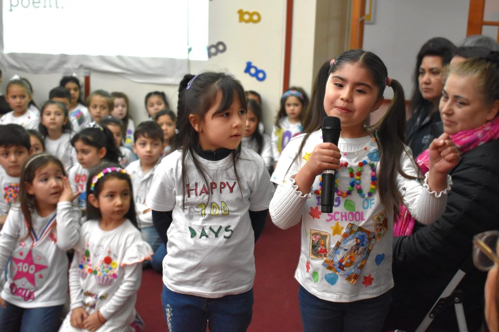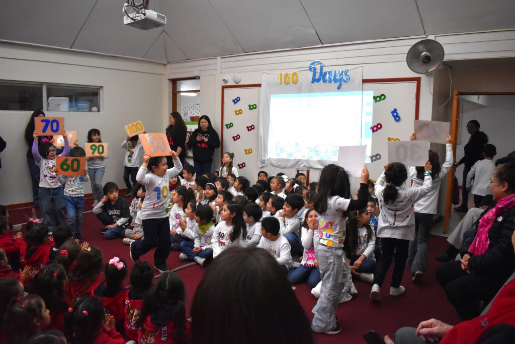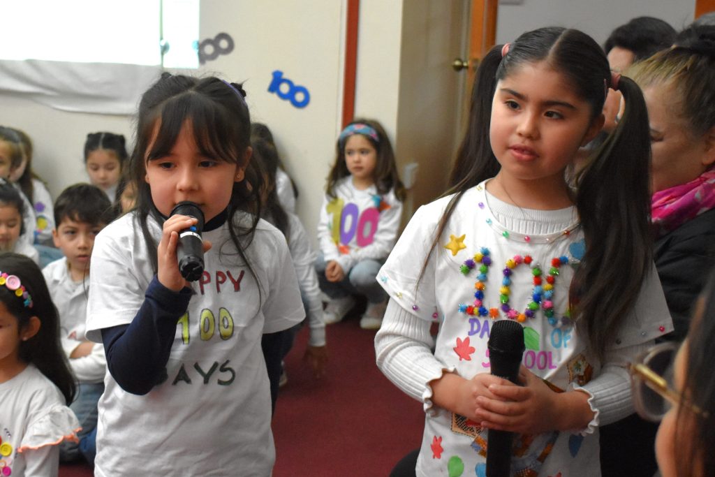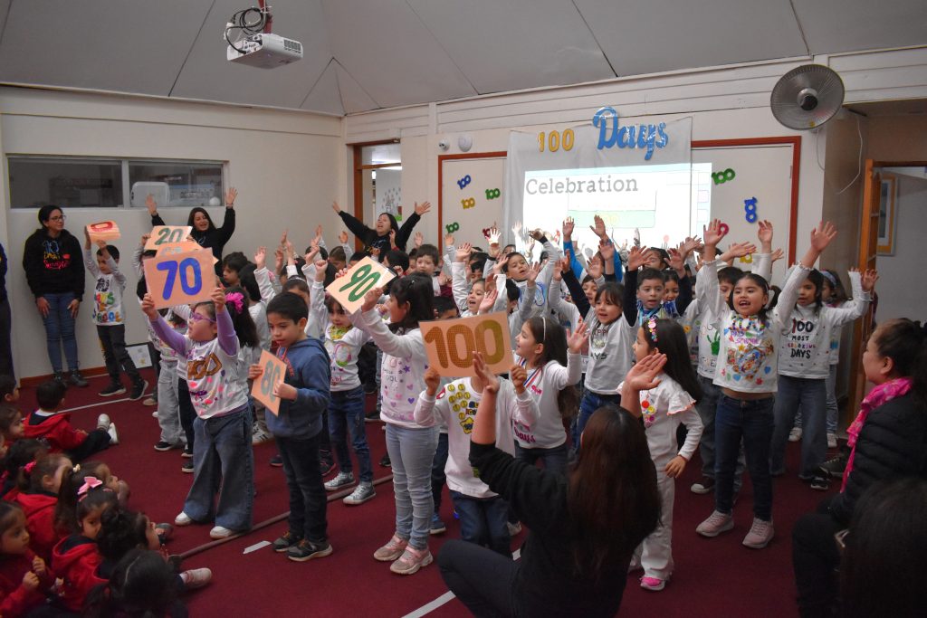 La celebración partió con un Announcement presentado a sus compañeros/as de área, donde cantaron las decenas hasta el 100 y recitaron un poema, todo esto en inglés, como parte de la formación inmersiva del idioma que reciben día a día en clases.