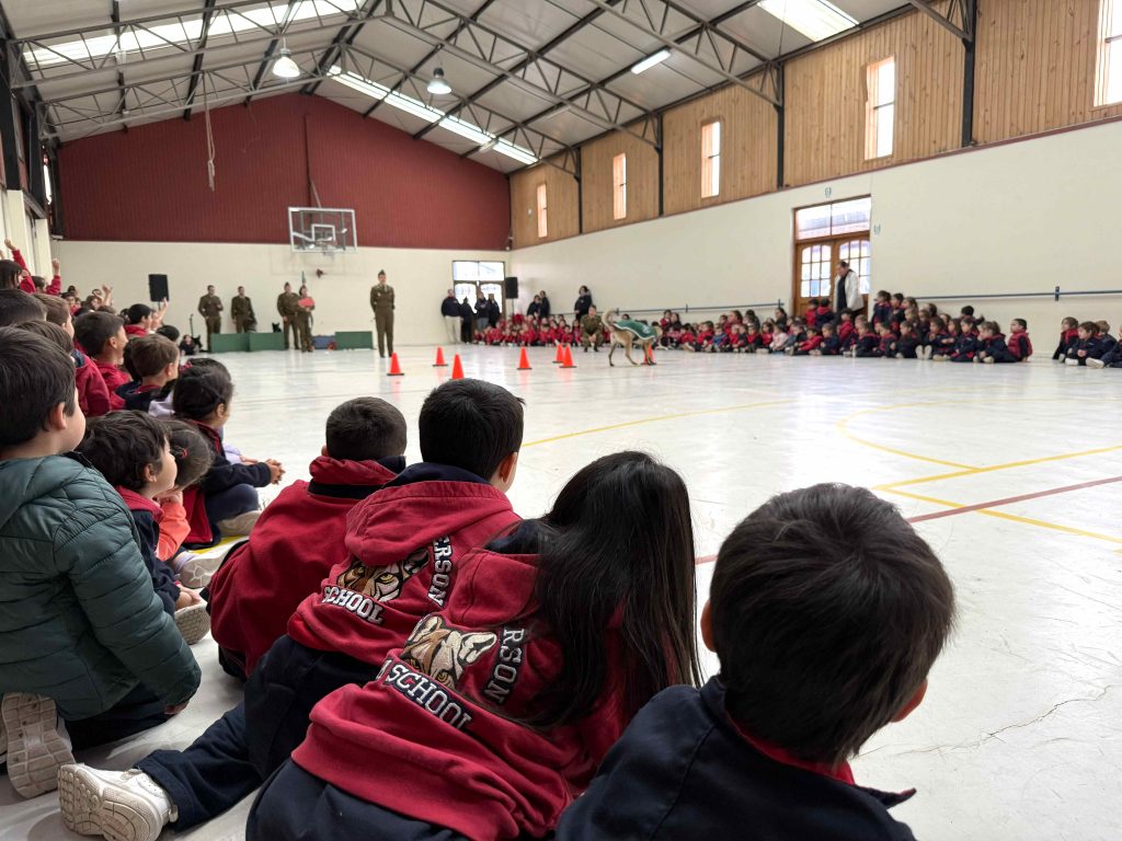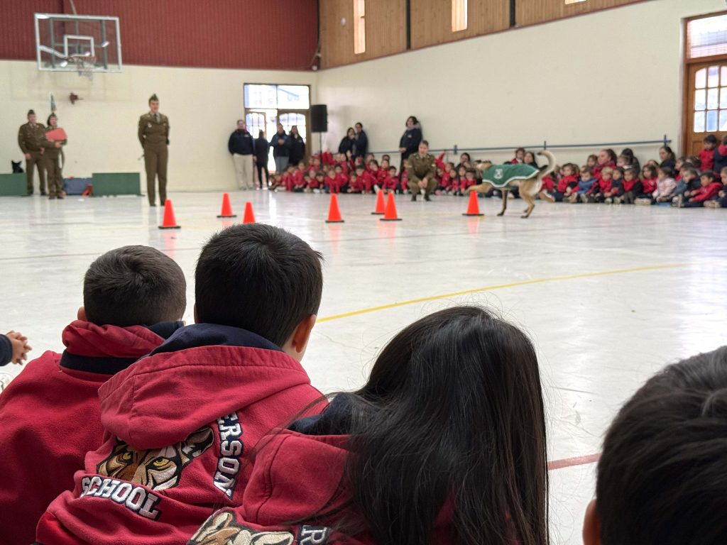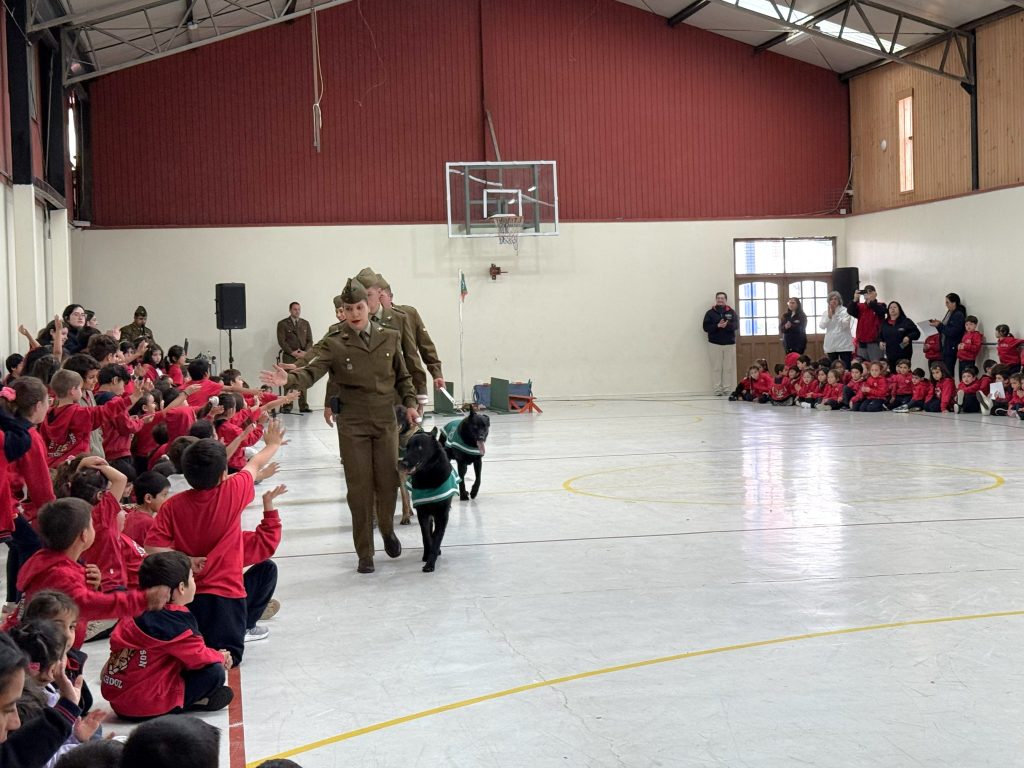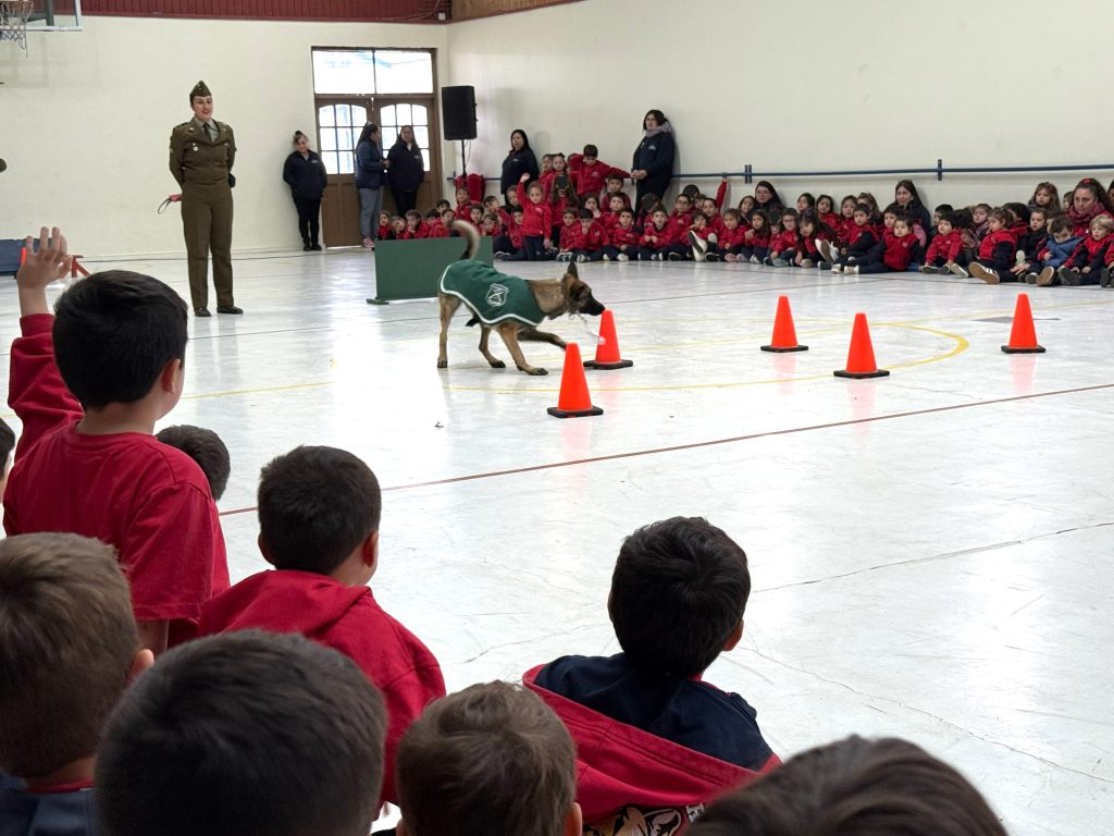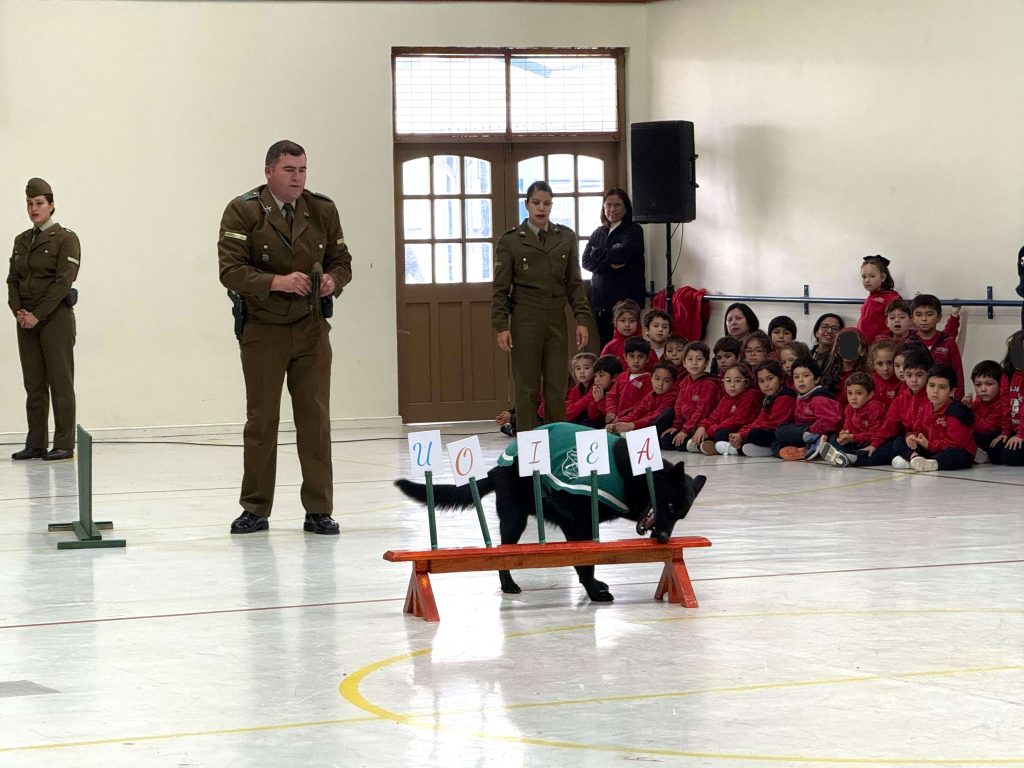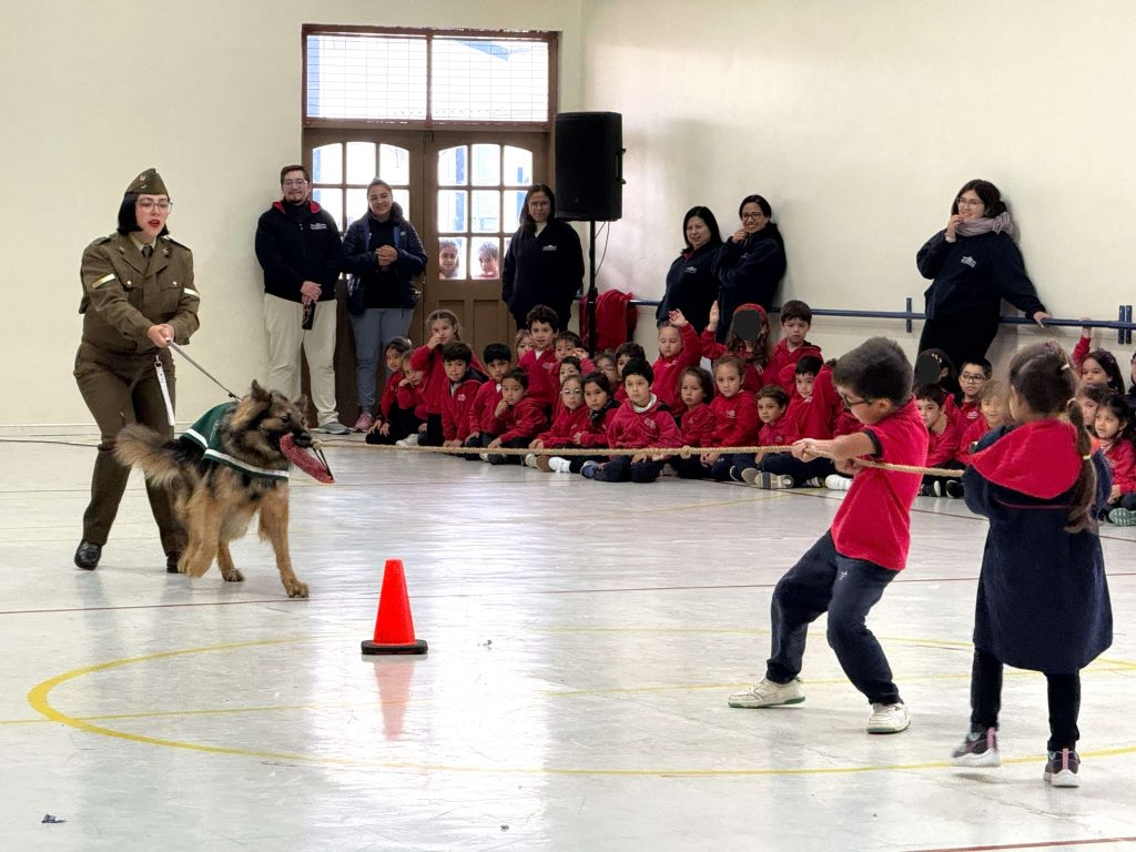 La Escuela de Adiestramiento Canino de Carabineros de Chile realizó un divertido show, donde los/as estudiantes pudieron participar y ver las habilidades de estos perritos: sus saltos, olfato y obediencia.